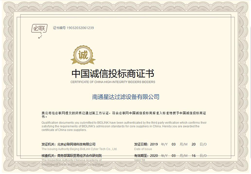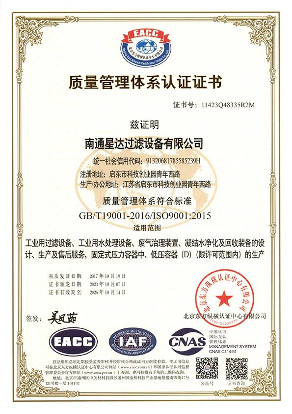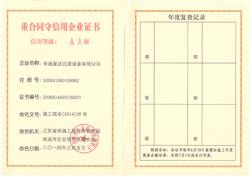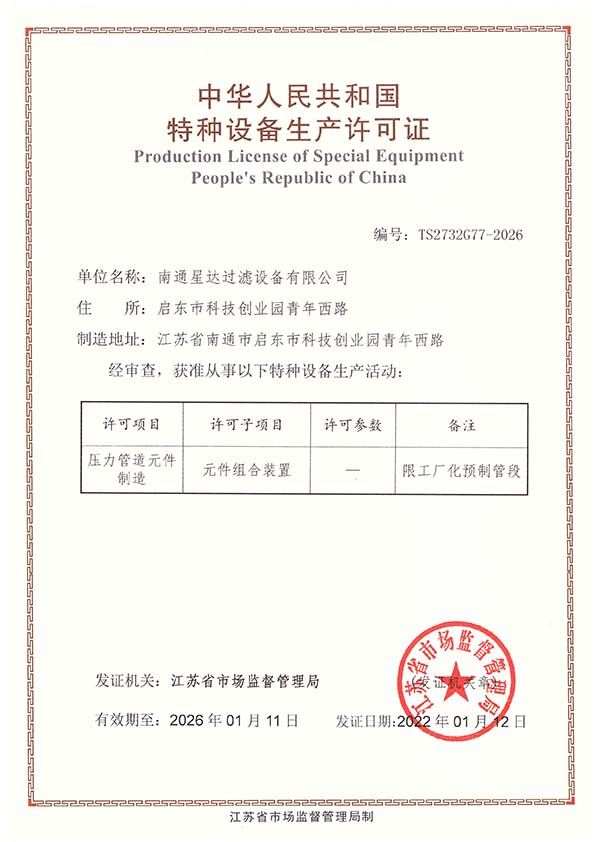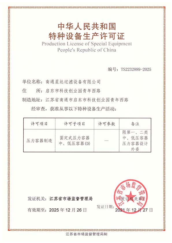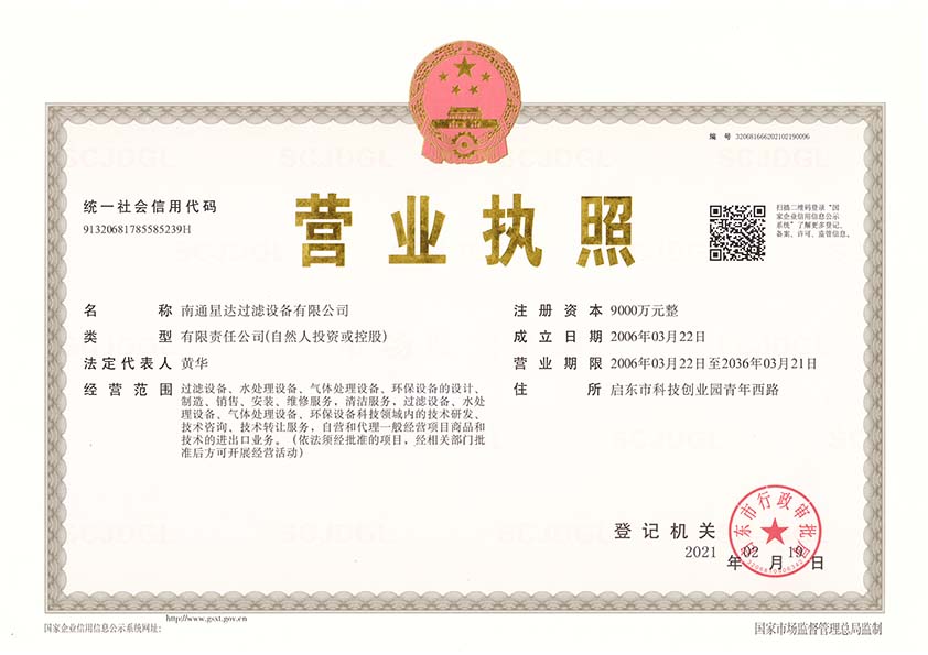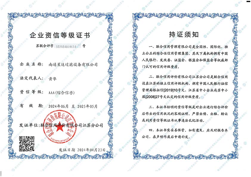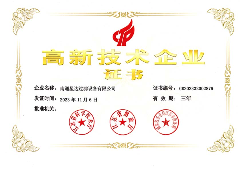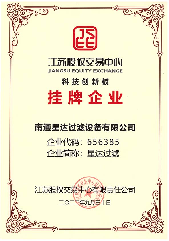 南通星达过滤设备有限公司将秉承“立星达品牌,数行业标杆”的经营理念,以创造社会价值为己任,把“星达”建设成为行业一流的现代化企业。